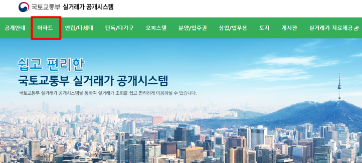 국토부 아파트 실거래가 공개시스템