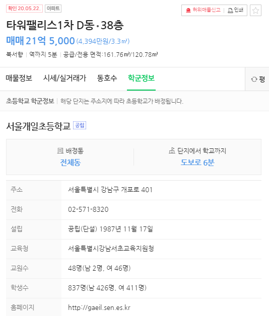 참고로 네이버 부동산 사이트를 이용해 실거래가 뿐만 아니라 매물정보 및 동호수 정보와 학군정보 등에 대한 내용을 무료로 조회해 볼 수도 있습니다. 여기서 알려주는 시세와 실거래가는 국토교통부를 기준으로 알려주기 때문에 매매와 전세 및 월세에 대한 실거래 가격은 네이버 부동산이나 국토해양부 아파트 실거래가 조회 시스템 사이트나 같습니다.