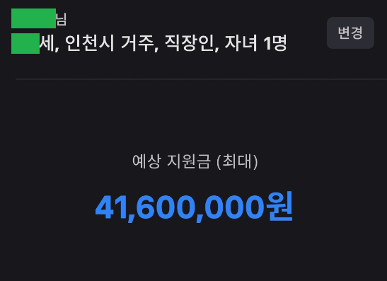 해당 서비스는 국적이 대한민국이 아닌 회원의 경우 이용 제한이 있을 수 있으며 경우에 따라 실제 정부 및 지자체가 제공하는 각종 지원금 확인이 어려울 수도 있습니다. 또한 정확성을 보증하지는 않기 때문에 단순히 참고 용도로만 활용하는 것이 좋습니다.