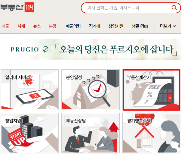 부동산114라는 사이트가 존재하는데요. 부동산의 모든 정보에 대한 빅데이터를 확인할 수 있는 홈페이지입니다. 여기에 접속하면 부동산 계산기를 통해 취득세 뿐만 아니라 양도소득세, 중개보수, 재산세, 상속세, 청약가점제, 전월세계산 등의 세금 내용을 자동으로 계산하여 확인할 수 있습니다.