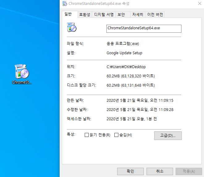 이렇게 다운로드 받은 설치 파일은60MB의 용량을 차지합니다. 기존 인터넷이 되는 환경에서 다운로드 받은 설치 파일은 1MB 정도의 용량만 차지합니다. 이제 이 파일을 USB와 같은 저장장치에 복사 후 인터넷이 되지 않는 PC로 옮겨서 설치를 진행할 수 있습니다. 이 방법은 주로 아이티쪽에서 일하시는 분들이라면 사용해 보셨을 방법입니다.