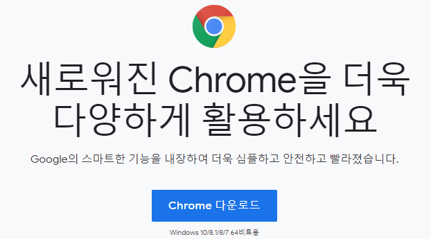 크롬은 구글이나 네이버와 같은 웹 포털 사이트에 검색하면 쉽게 설치할 수 있습니다. 먼저 크롬을 다운로드 받을 수 있는 바로가기 사이트에 접속합니다. 접속을 하면 바로 새로워진 Chrome을 더욱 다양하게 활용하세요. 라는 문구를 볼 수 있으며 하단에 윈도우에서 사용할 수 있는 Chrome 다운로드 버튼을 볼 수 있습니다. 이것을 클릭하게 되면 설치파일을 컴퓨터나 노트북과 같은 PC환경에 다운받을 수 있습니다.